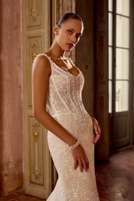 Φόρεμα με φιγούρες και δαντέλα Chantilly και φουστανέλα Allover με Basque στη μέση